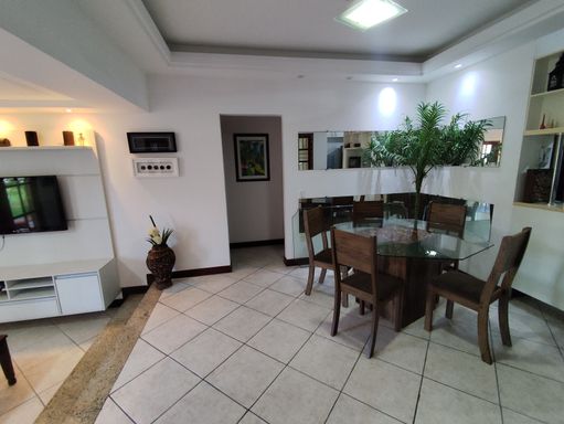 Com uma planta bem resolvida, o imóvel oferece duas suítes e uma demi-suíte, todas com varandas, criando ambientes arejados, iluminados e acolhedores. A sala de estar convida ao descanso depois de um dia de praia, enquanto a sala de jantar se integra de forma harmoniosa, ideal para reunir família e amigos. A cozinha, equipada com móveis planejados, facilita a rotina e torna o dia a dia mais funcional, seja para moradia ou locação por temporada.