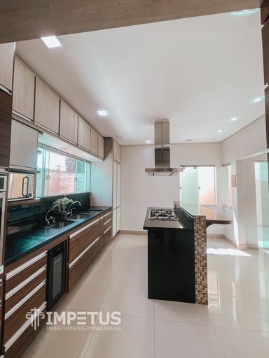 ✔️ Cozinha planejada com ilha, cooktop, forno e coifa