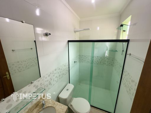 No pavimento superior, a área íntima oferece duas suítes, uma delas conta com varanda, perfeita para aproveitar a ventilação natural. Os banheiros possuem acabamento em granito, reforçando a durabilidade e o cuidado nos detalhes.